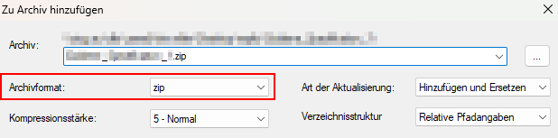 Achten Sie darauf, dass alle Dateien und Anhänge vollständig in das ZIP-Archiv aufgenommen werden, da andernfalls Inhalte fehlen können.